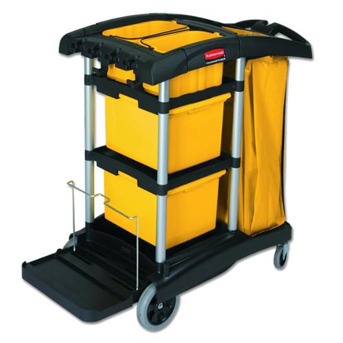 Rubbermaid Janitorial High Capacity Cleaning Cart with Bins, Black
