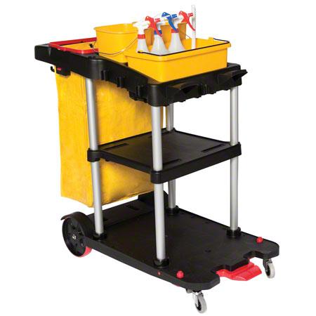 Traditional Janitorial Cart with Zippered Yellow Bag, Black