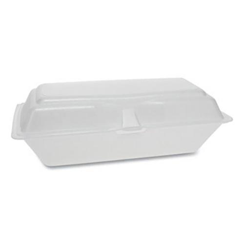 Pactiv Foam Smartlock Hoagie Hinged Lid Container, 9.75" x 5" x 3.25" White