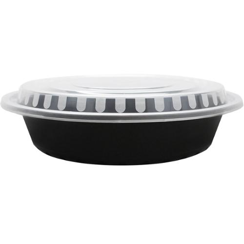 Karat 48oz Plastic Microwavable Round Food Containers & Lids, Black, 150/cs