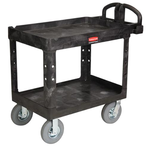 Rubbermaid Heavy Duty Ergo Utility Cart, Flat Shelf, Medium, Black