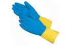 Hospeco 12" Medium Straight Cuff Blue Neoprene Over Yellow Latex Gloves