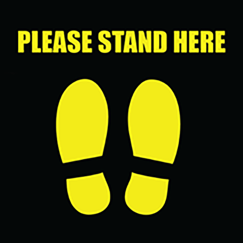 Americo 12" Square Social Distancing Mat, Please Stand Here, Black