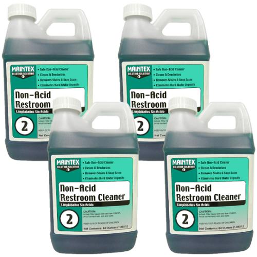 Non-acid, synthetic detergent cleaner for enamel, porcelain and tile. Deodorizes as it safely removes scale, soap film and stains from bathroom fixtures. Excellent for regular use in removing hard water deposits. Only for use in Maintex Dilution Solution chemical dispensers. 64 oz. Made in USA.