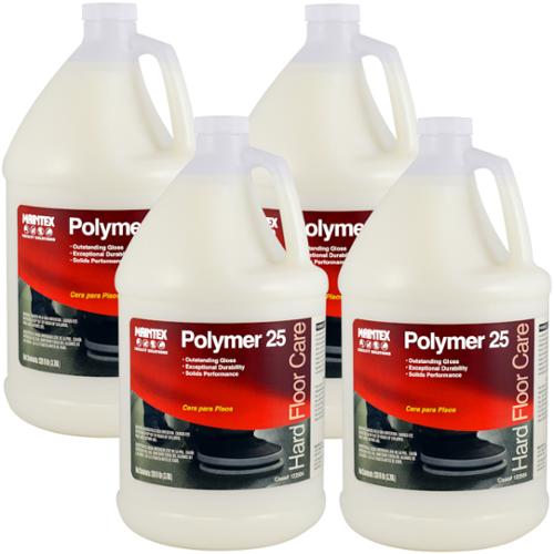 An exceptional floor finish and sealer. Polymer #25 provides outstanding durability and wear for all floor types including resilient tile, concrete and terrazzo. High solids formula allows for fewer coats to achieve superior results. This specially designed formula does not require buffing however it will burnish to a superior gloss. A single gallon will cover 2,000 - 2,500 sq. ft. per coat depending upon application technique. UL Classified. Made in USA.