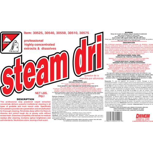 Steam Dri Powdered carpet steam cleaning concentrate. Specifically formulated for use in all self contained hot water carpet extraction cleaning units, and truck mount units. Excellent deep cleaning. Built-in optical brighteners and a fresh clean fragrance, fast dissolving and quick acting.