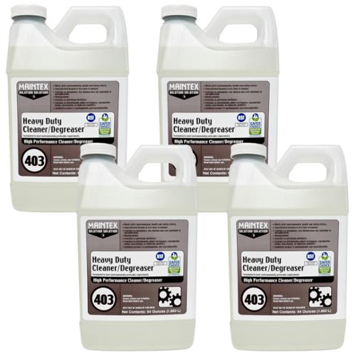 U.S. EPA Safer Choice certified, non-toxic, environmentally preferable cleaner/degreaser fortified with powerful emulsifying agents and solvents that quickly dissolves and removes oil and protein based soils from metal, plastic, tile, porcelain, sealed wood, concrete, appliances, machinery and any washable surface. Recommended for use on all food processing equipment and in food service areas. Non-flammable, non-toxic, and contains no harsh caustics, or ammonia. Only for use in Maintex Dilution Solution chemical dispensers. NSF Certified. 64 oz. Made in USA.
