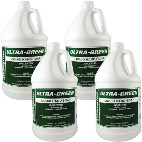 Ultra-Green Unscented will emulsify body oils, petroleum oils, grease, and dirt. Ultra-Green is specifically formulated to be non-clogging and leaves no residue on sink or counter tops. Ultra-Green has excellent lather and is unscented. Ultra-Green leaves hands soft, clean and fresh. This product is biodegradable and contains no phosphates. Green Seal Certified. Champion Chemical. Made in USA