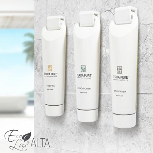 Beautiful sleek design with controlled dosage which minimizes product waste, while our recyclable bottles reduce environmental waste. Quick change disposable bottles mean less time spent on housekeeping, making the EcoLux Alta system cost effective as well as an elegant guest bathroom addition.