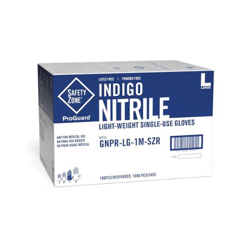 Indigo (blue/violet) Nitrile 3.6 Mil. gloves. These powder free gloves are 100% synthetic, so there is no latex-oriented allergic reaction. Resists puncture and abrasion better than PVC/Vinyl. Textured fingertips provide a firm grip on wet or oily objects. Standard length (9.65" +/- 0.25"). Indigo visually differentiates this glove with unique color recognition. Size XL.