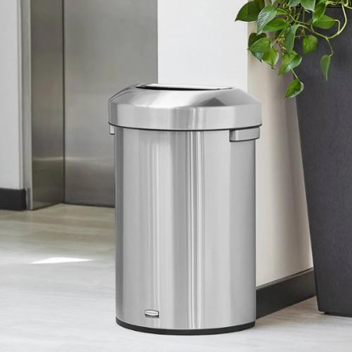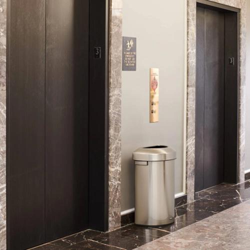 Featuring a classic design and fingerprint-resistant stainless steel, the Refine waste container fits seamlessly into any commercial space for a discreet look that enhances the overall environment. All metal construction provides a modern aesthetic and keeps your facility looking clean. Half Round design fits flush against walls to conserve space and reduce obstructions in high traffic areas.
