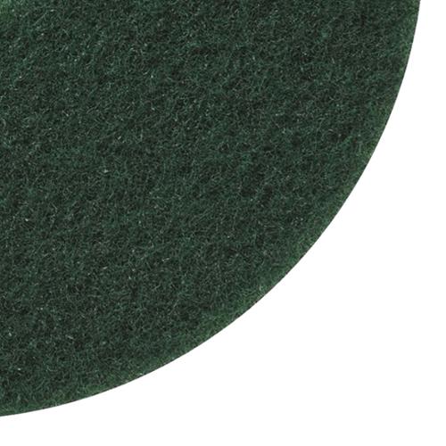Full Cycle Products are certified by Green Seal for Environmental Innovation based on faster biodegradation in landfill conditions and 100% recycled content/natural fiber. Green, all purpose, wet scrubbing pad for use with 175-300 rpm equipment. Will remove the surface coat of floor finish along with dirt, heel and scuff marks. Made in USA.