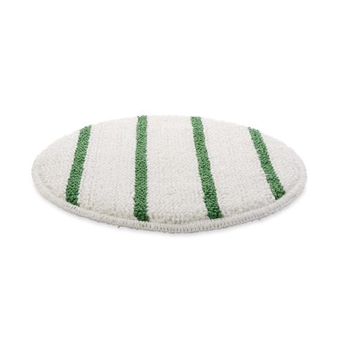 Medium profile absorbent bonnet with special scrubbing strips for improved cleaning performance. Launderable blended looped-end yarn cleans without over wetting carpet surface. Ideal for medium to thick carpet. Made in USA.