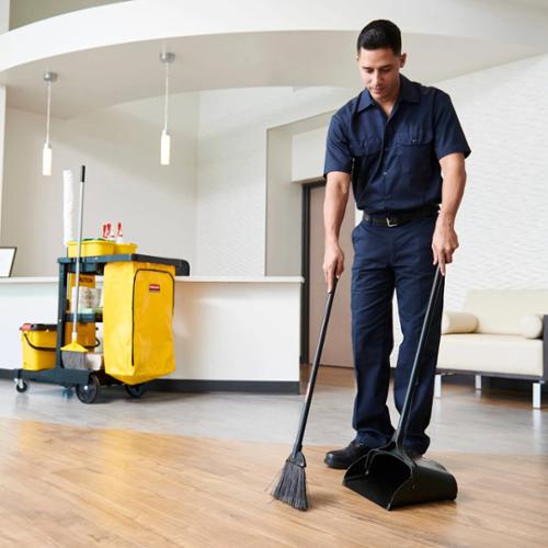 The Rubbermaid Commercial Executive Lobby Broom with Vinyl Handle is great for sweeping and cleaning in restaurants, malls, lobbies, and more.