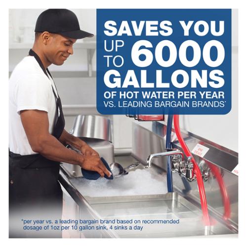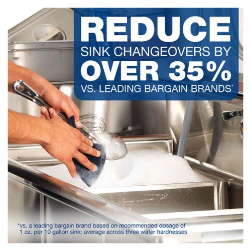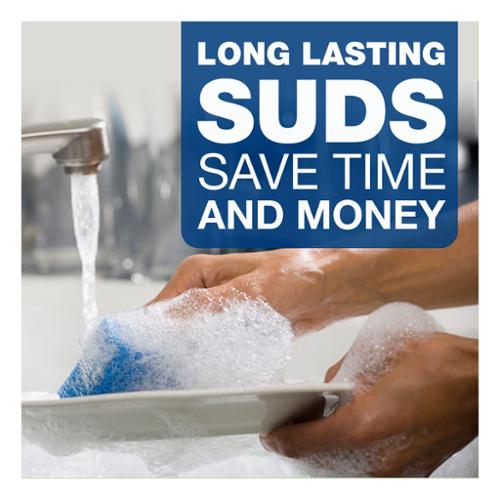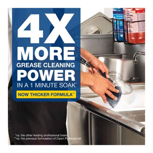 The grease-fighting power of Dawn, specifically formulated for tough business jobs. Dependable dishwashing liquid leaves pots, pans and dishes squeaky clean. Long lasting suds provide greater cleaning capacity with less sink changeover. 38 oz bottle. Made in USA.