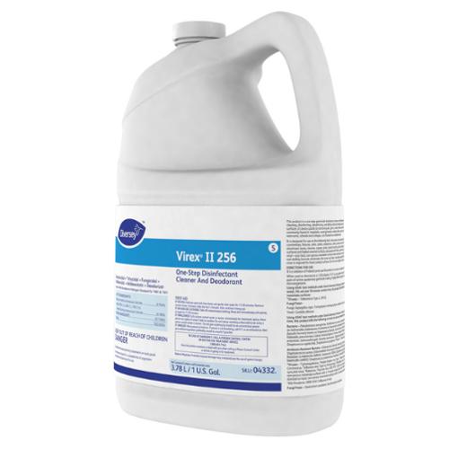 A one-step, quaternary-based disinfectant cleaner concentrate providing broad spectrum disinfection at 1:256 dilution. Use in healthcare and other facilities where cleaning and prevention of cross-contamination are critical. Bactericidal, viricidal and fungicidal. Kills MRSA and VRE. Meets bloodborne pathogen standards for decontaminating blood and body fluids. Blue in color with a minty scent. Kills microorganisms including HIV-1, VRE, MRSA, GRSA, MRSE, VISA, PRSP, Herpes Simplex Types 1&2, Influenza Type A2, Adenovirus, Rotavirus and many more. Kills the organisms that cause odors and works as an odor counteractant to further eliminate odors not associated with bacteria. Highly concentrated quaternary formula provides excellent one-step, cost-effective cleaning and disinfection