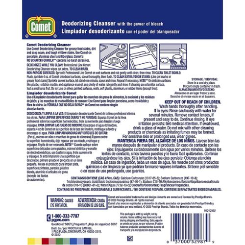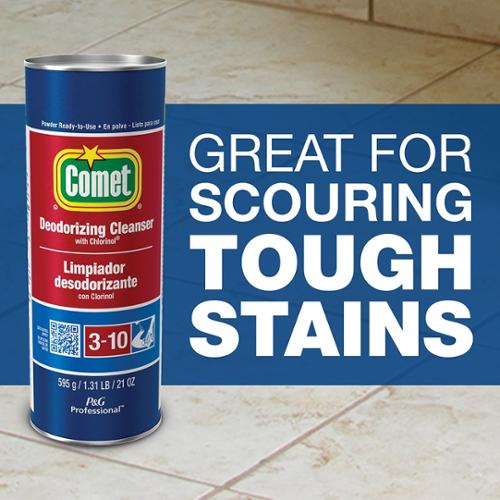 Bleaches tough stains and deodorizes as it cleans. Great for scouring tough stains on toilet bowls, wall tiles, tubs, sinks, chrome, stainless steel, stove tops and ranges, pots and pans. Its gentle abrasives can be used on fiberglass tubs and showers, imitation marble and similar hard plastic surfaces. 21 oz can. Made in USA.