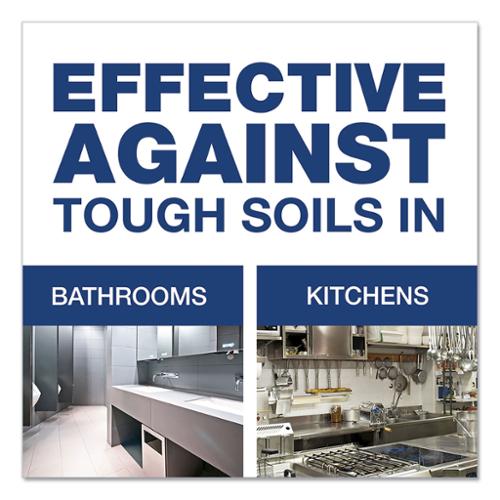 Proprietary blend of anionic surfactants cut through tough grease and grime. Powerful ingredients eliminate mold and mildew without scrubbing. Easy-to-use trigger spray bottle allows accurate dispensing. Chlorine bleach provides wealth of well-known bleach benefits. Perfect for cleaning countertops, tables, cutting boards and more. 32 oz bottle. Made in USA.