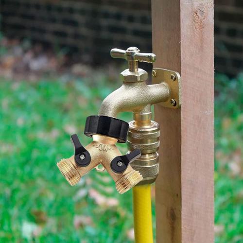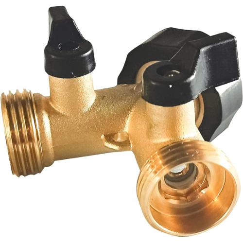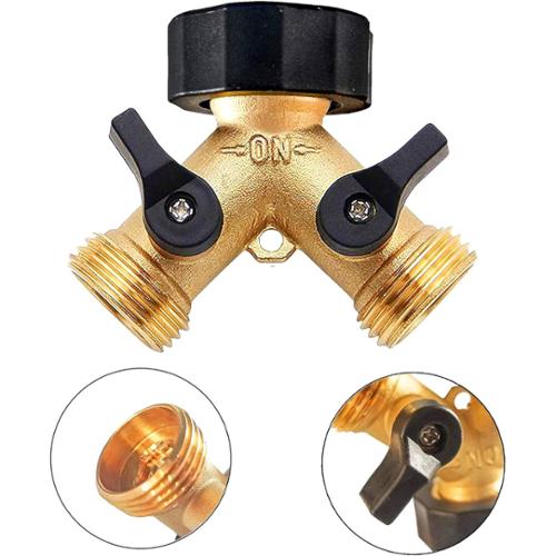 Made of solid brass is durable, can be used for many years and this solid brass hose connector can be used up to 0.8 Mpa water pressure. The heavy duty brass Y connectors fit with all 3/4 inch standard garden hose and faucet. There is 1 intake internal diameter: 3/4" and 2 outlet external diameter: 3/4 inch. Dimensions 3.82" x 2.68" x 2.28"