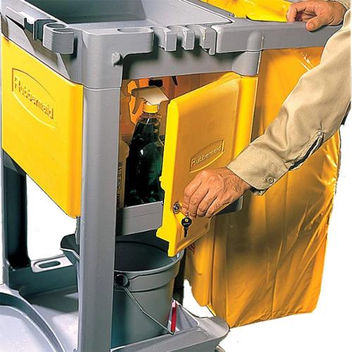 Locking Cabinet Doors are an optional addition to RCP Janitorial Cleaning Carts to help keep cleaning supplies hidden and secure.