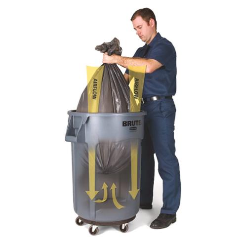 The Rubbermaid Commercial vented BRUTE container has innovative venting channels make lifting out liners up to 50% easier, improving productivity and reducing the risk of injury. The proprietary design constructed with the highest quality material plus a UV inhibitor ensures long life in even the most extreme commercial environments. Guaranteed to never fade, warp, crack, or crush.