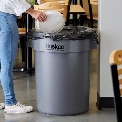 Double-reinforced stress ribs and drag skids offer long lasting durability. Safe for food contact (NSF Std. 2); recommended for temperatures up to 196F. Rounded Comfort Curve handles make container safe and easy to handle (even when full); helper handles on base provide controlled tipping or overhead lifting. Molded-in base notches provide secure attachment to 5 caster roller dolly (sold separately). Matching lid available (sold separately). Made in USA. 1 each