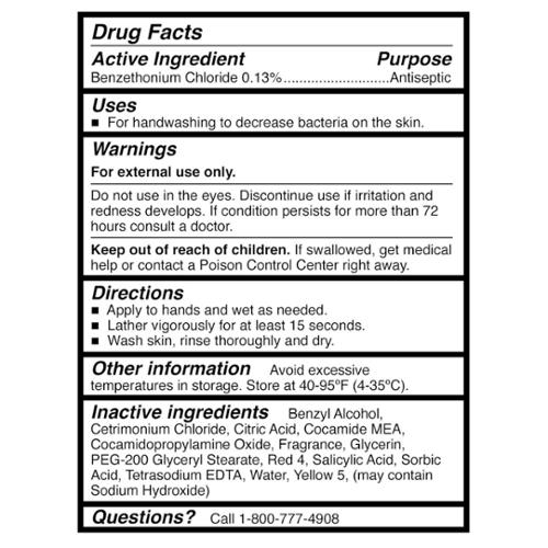 Contains benzethonium chloride (0.13) to decrease bacteria on the skin