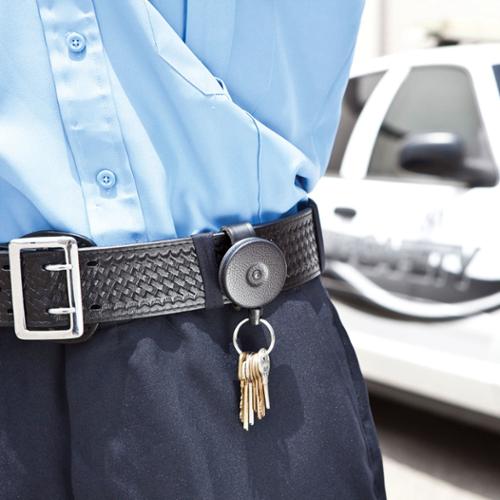Retractable clips allow keys to be drawn out when needed and then pulled back into the clip. They attach to belts, clothing, or bags to keep keys secured and easily accessible.