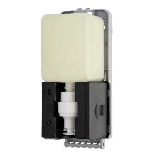 Draco 2300B-2 automatic foam dispenser with bottle. Holds 1000ml. Slim look design, recessed window for viewing soap levels, key double hole lock tabs located on top for extra security, and low battery indicator. Safety switch that automatically shuts unit down if case is open. Permanent install with screw sets or adhesive for effortless installation. Provides up to 10,000 dispenses.