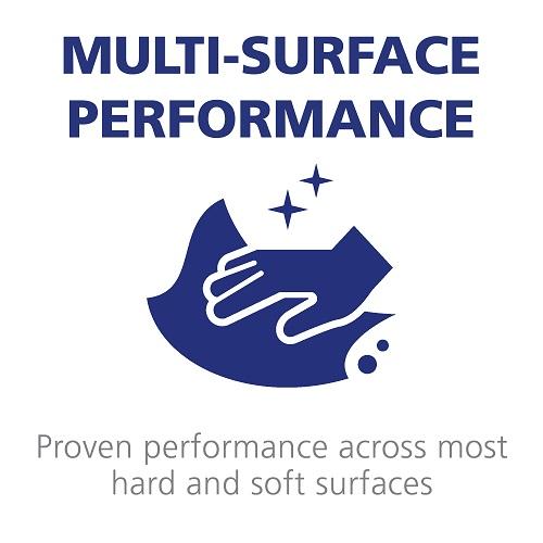 One-step hospital disinfectant and cleaner. Kills Human Coronavirus* and Hepatitis A in 60 seconds. 30-second disinfection for MRSA, VRE, and Norovirus. Fragrance-free formula contains, no bleach, harsh fumes, or precautionary statements. No rinse required on food contact surfaces. Proven effective across most hard and soft surfaces. Awarded the U.S. EPA Design for the Environment certification (DfE). Sealed flip-cap bottles with triggers banded to bottles. 32 fl oz Capped Bottle with Spray Trigger Banded to Bottle. Made in USA.