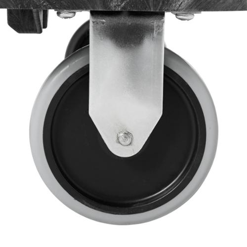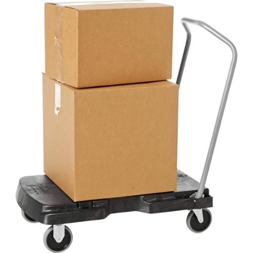 The Rubbermaid Commercial Triple Trolley efficiently transports large, bulky loads, then folds flat for easy storage. Its sturdy, structural foam deck wont rust, dent, chip, or peel. The nonskid platform surface helps prevent load shifting. Three-position handle lets users push, pull, or fold flat for use as a dolly. Casters are non-marking.