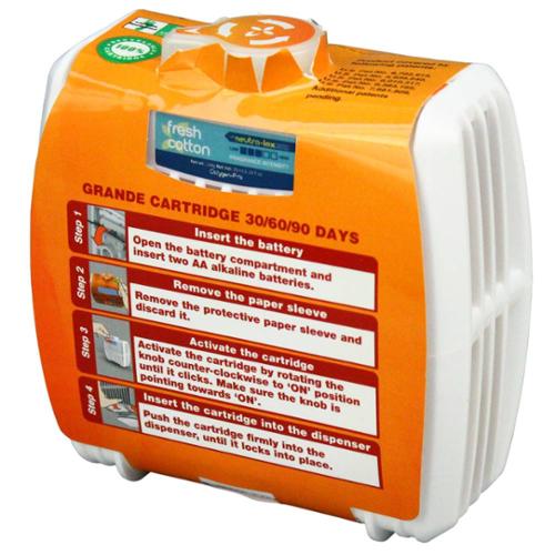 Oxygen-Pro gradually dispersed fragrance delivers continuous fragrance intensity. The unique cellular diffuser will not dry out or become saturated too quickly. Simple to install and service - just twist and go. Operates on 2 AA alkaline batteries (not included), lasts for a minimum of 1 year.