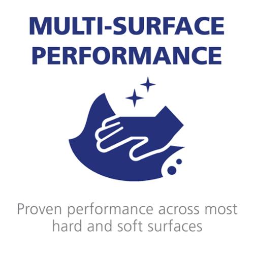 One-step professional disinfectant and cleaner. Kills Human Coronavirus* and Hepatitis A in 60 seconds. 30-second disinfection for MRSA, VRE, and Norovirus. Fragrance-free formula contains, no bleach, harsh fumes, or precautionary statements. No rinse required on food contact surfaces. Proven effective across most hard and soft surfaces. Awarded the U.S. EPA Design for the Environment certification (DfE). Made in USA.