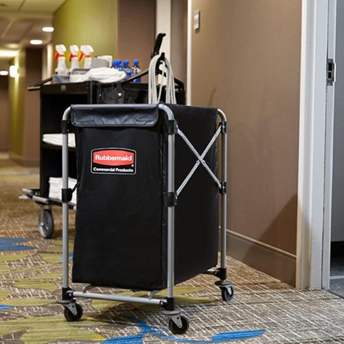 The Rubbermaid Commercial 1881749 Executive Series Collapsible X-Cart Basket, 4-Bushel, 220 lbs load capacity, Black.