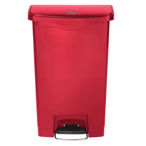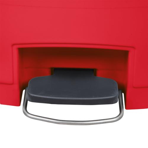 The Rubbermaid Commercial Streamline Front Step-On Container has a small footprint and offers increased pedal clearance for easy foot access and hands-free waste disposal. A tight-fitting lid has a controlled close to reduce noise and an internal hinge design to prevent wall damage. Offering easy maintenance, this step-on container features a liner retainer band to securely hold liner bags.
