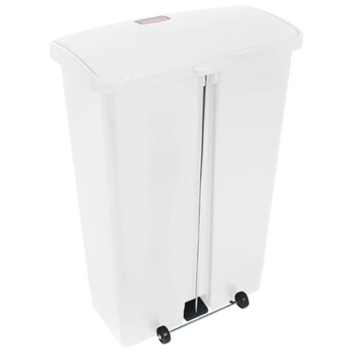 The Rubbermaid Commercial Streamline Front Step-On Container has a small footprint and offers increased pedal clearance for easy foot access and hands-free waste disposal. A tight-fitting lid has a controlled close to reduce noise and an internal hinge design to prevent wall damage. Offering easy maintenance, this step-on container features a liner retainer band to securely hold liner bags.