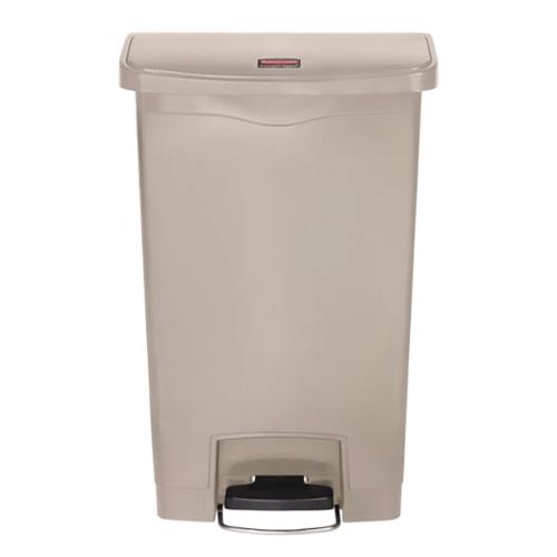 The Rubbermaid Commercial Streamline Front Step-On Container has a small footprint and offers increased pedal clearance for easy foot access and hands-free waste disposal. A tight-fitting lid has a controlled close to reduce noise and an internal hinge design to prevent wall damage. Offering easy maintenance, this step-on container features a liner retainer band to securely hold liner bags.