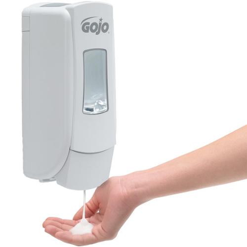 High capacity 700 mL dispenser is ideal for high traffic areas. Large sight window, skylight and crystal clear refill bottles make it easy to check fill status. Converts to a locking dispenser at any time by simply removing the key from inside the dispenser. ADA compliant for protrusion into walkways. Lifetime guarantee. Patent pending CONTROLLED COLLAPSE refill bottles hold their shape as they empty for a more attractive overall appearance. Removable pump makes recycling easy. SANITARY SEALED refills are made of durable, recyclable PET material, using 30% less plastic than rigid HDPE bottles. Made in USA.