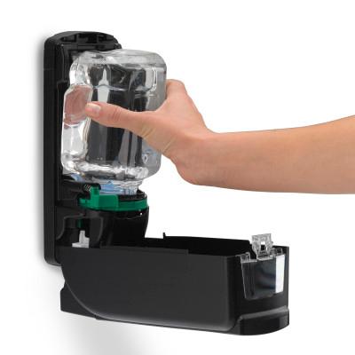 High capacity 700 mL dispenser is ideal for high traffic areas. Large sight window, skylight and crystal clear refill bottles make it easy to check fill status. Converts to a locking dispenser at any time by simply removing the key from inside the dispenser. ADA compliant for protrusion into walkways. Lifetime guarantee. Patent pending CONTROLLED COLLAPSE refill bottles hold their shape as they empty for a more attractive overall appearance. Removable pump makes recycling easy. SANITARY SEALED refills are made of durable, recyclable PET material, using 30% less plastic than rigid HDPE bottles. Made in USA.