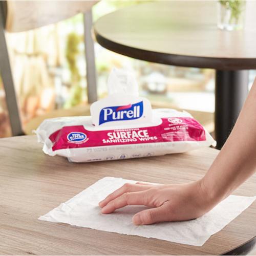 Tackle germs on high-touch surfaces with PURELL Surface Wipes. Quickly eliminate 99.9% of bacteria and viruses including cold & flu, strep, norovirus, Listeria, MRSA, VRE, and human coronavirus. Keep canisters near hot spots where routine and fast disinfection of hard surfaces is needed. Carry flow packs with you to sanitize and disinfect more efficiently. Kills human coronavirus (COVID-19) in 30 seconds. EPA Registered and U.S. Food Code compliant. No precautionary statements. No hand washing required after use. Fragrance Free. Sheet Size: 7.4"x9". Made in USA