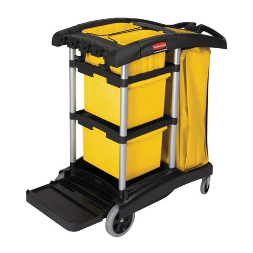 - Expansive storage space with removable bins and caddies let staff restock before they clean, increasing productivity by eliminating search time for additional supplies.