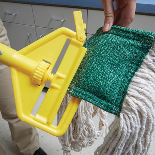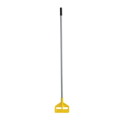 Invader Side-Gate Mop Handle makes removing and replacing mop heads easy and efficient. Thumbwheel clamps the mop firmly in place; should be used with 1" headband mops only. Features a yellow plastic head and a fiberglass handle for corrosion resistance and good strength-to-weight ratio.