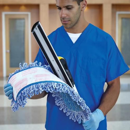 - One-step connecting mechanism speeds mop assembly and changeover.