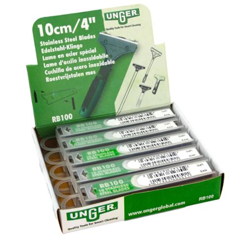 4" Replacement Blades Stainless Steel 10 pack. Compact handy dispenser safely stores new and used blades. Blades easily slide in and out of dispenser. Long lasting, rust-free stainless steel. Sharp blade for scraping off paint, stickers, etc. Dull side for removing stucco and cement. 10 blades per tube, 10 tubes per pack For Grill Scraper (GS050, GS100), Maxi Scraper (STMAX), Light Duty Floor Scraper (LH12C), ErgoTec Scraper (SH00C), The Brute Scraper (SH25C).