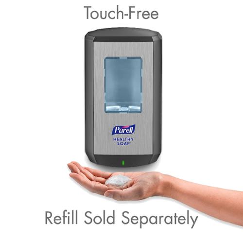 Reliable, touch-free hand soap dispenser. Large sight window makes it easy to check refill level. Uses PURELL CS6 1200 mL HEALTHY SOAP refills. Dispenser and formulation are calibrated to provide the optimal dose for effective hand hygiene. Includes 4 "C" cell batteries - no tools required for replacing batteries. Collapsible, SANITARY SEALED PET refill bottle with removable collar for easy recycling. LOCK OR NOT technology - can convert to a locking system. Fully ADA compliant. Guaranteed reliability. Made in USA