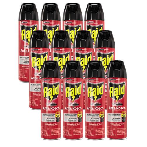 SC Johnson Raid Ant & Roach Killer. With active ingredients for rapid action and residuals to keep killing insects for up to four weeks, Raid Ant & Roach Spray provides extremely fast knockdown. It also kills of a broad range of crawling insects, leaving behind nothing but an Outdoor Fresh scent. No CFCs. EPA Registered. 17.5-oz. can.