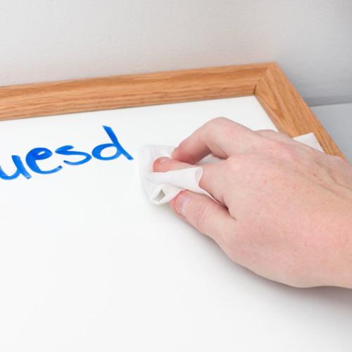 - Removes ghosting and stubborn marker ink from most dry erase surfaces.