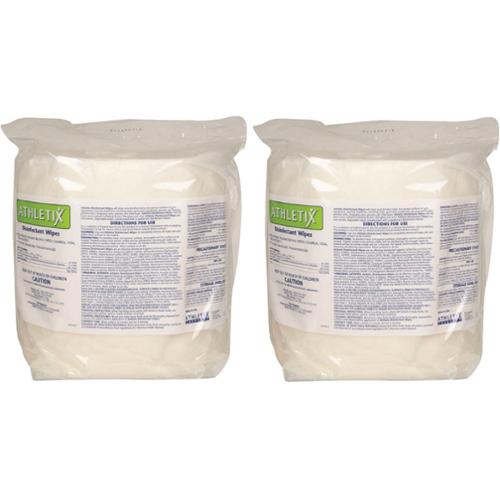Athletix Disinfectant Wipes are a quick and convenient way to disinfect surfaces in your health club, fitness facility or spa. Premoistened and ready to use, the durable, disposable wipes are packaged 900 per roll in a portable dispenser bucket. Athletix Disinfectant Wipes kill antibiotic-resistant bacteria MRSA and CA-MRSA, and are effective against many common bacteria such as Staphylococcus aureus (Staph), Salmonella enterica (Salmonella), Streptococcus pyogenes (Strep) and Escherichia coli (E. coli)*. Athletix Disinfectant Wipes have been shown to kill flu virus**, and kills Pandemic 2009 H1N1 Influenza A virus** (formerly called swine flu). Please see product label for a complete list of organisms.