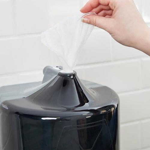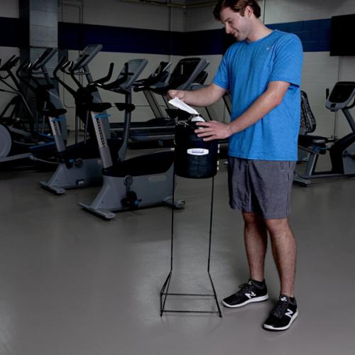 Durable and sturdy, this unit has no complicated moving parts and comes with mounting hardware. The simple center-pull design eliminates needs for levers, dials, or cranks. The semi-transparent, gray colored dispenser allow employees to see when the Athletix Equipment Cleaner wipes are running low. To refill, open the dispenser with the permanently attached key. Follow the loading instructions on the bag, thread the wipe through the opening, close the door and go!