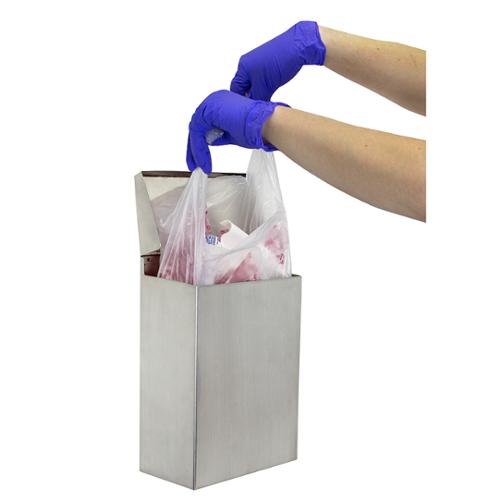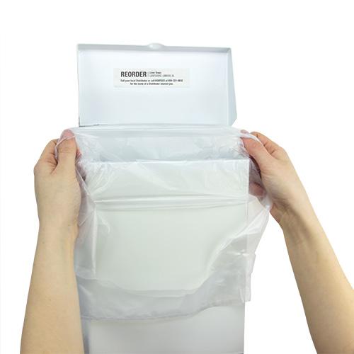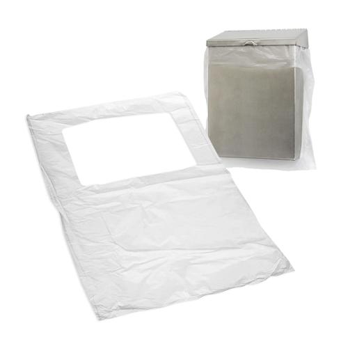 New Improved SecureFit360 HD liner bags are more rigid to provide a better formed fit, making installation and removal easier and more efficient. The frosted color masks the contents yet still allows cleaning staff to see and avoid potential needles and other sharps. The heat seal at the top strengthens the built-in wrap around strap and makes it appear neater on the receptacle. Not only is the thinner high density bag made with considerably less plastic than the original low density SecureFit360, it sends 50% less material weight to a landfill than Kraft waxed paper bags. Width 12 1/2 in, Height 15 1/2 in, Material High Density Polyethylene (HDPE), Color Frosted Clear. Made in USA.